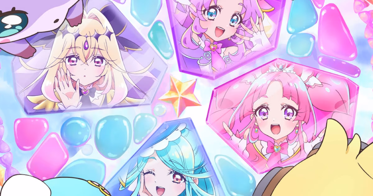 In the released trailer, the series' protagonist Anna Akechi (Cure Answer) and her partner Mikuru Kobayashi (Cure Mystique) are seen taking action to solve an exciting mystery. While the suncatcher at the center of the visual illuminates scenes by refracting light through its colorful stones, hints are given that characters like Cure Arcana Shadow and Cure Eclair, who have not yet been fully introduced in the TV series, will also play important roles in the film. Additionally, the series' beloved mascots Pochitan, Jett-senpai, Mashutan, and Shushutan will accompany our detectives on this cinematic adventure.