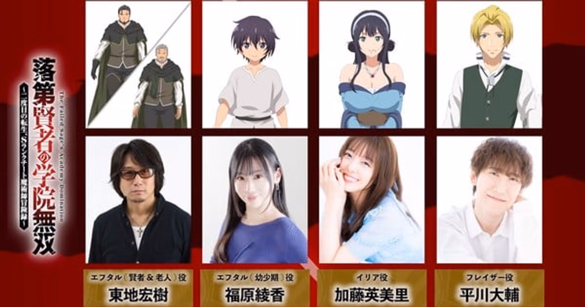 At the AnimeJapan 2026 event, exciting new details were shared for the highly anticipated fantasy anime From Overshadowed to Overpowered: Second Reincarnation of a Talentless Sage (Rakudai Kenja no Gakuin Musō). According to the official announcement made at the NBCUniversal booth, four new names have joined the series' voice cast. Hiroki Tōchi will voice the older and wiser version of the character, while Ayaka Fukuhara will bring the main character's childhood to life. Additionally, Emiri Katō (Iria) and Daisuke Hirakawa (Fraser) are other professionals who have joined the production's expanding cast.