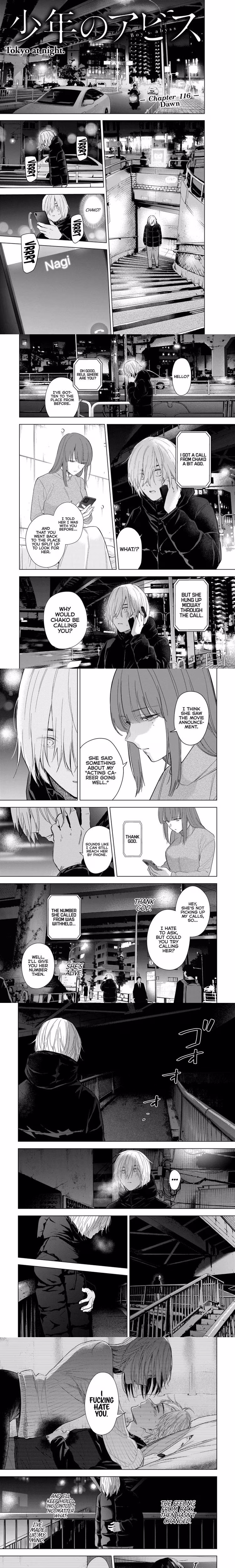 Whew, **Shounen no Abyss - Chapter 116** has readers holding their breath! 😨 If you've been following the complex drama, this chapter definitely ramps up the tension, especially for one particular character.