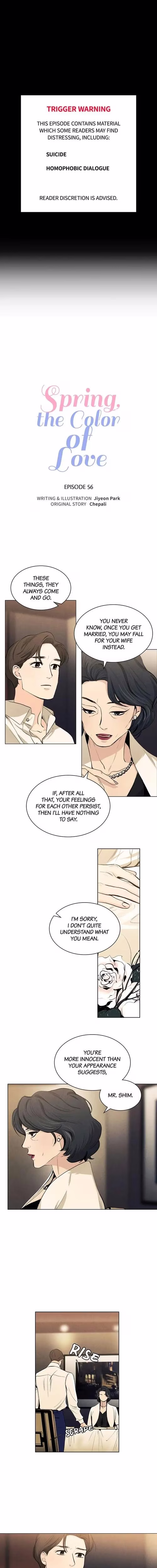Overall, Spring, the Color of Love Chapter 56 delivered a heavy dose of pain and frustration for its readers, largely due to a meddling parent and a character's disappointing silence. It seems like everyone needs a hug (or perhaps a punching bag) after this one!